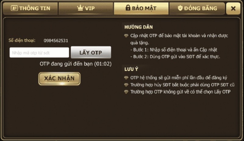 - Bước 2: Xác thực tài khoản chơi bằng số điện thoại + nick Facebook.